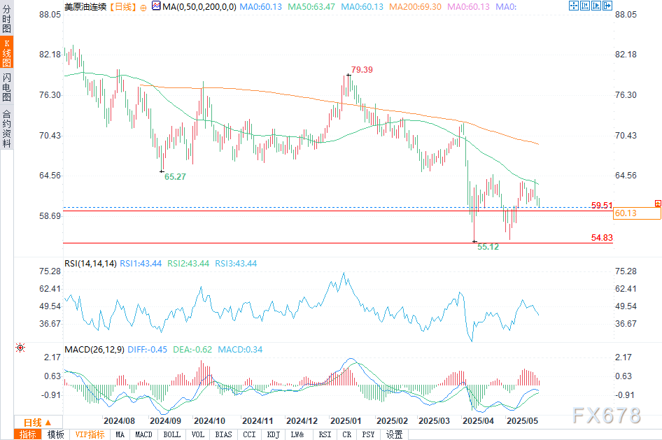由于技术阻力位未被突破,且多个基本面因素指向全球供应增加,原油市场仍偏向下行。除非59.51美元支撑位坚守并推动市场情绪转向,否则短期内阻力最小的路径似乎仍是看跌。